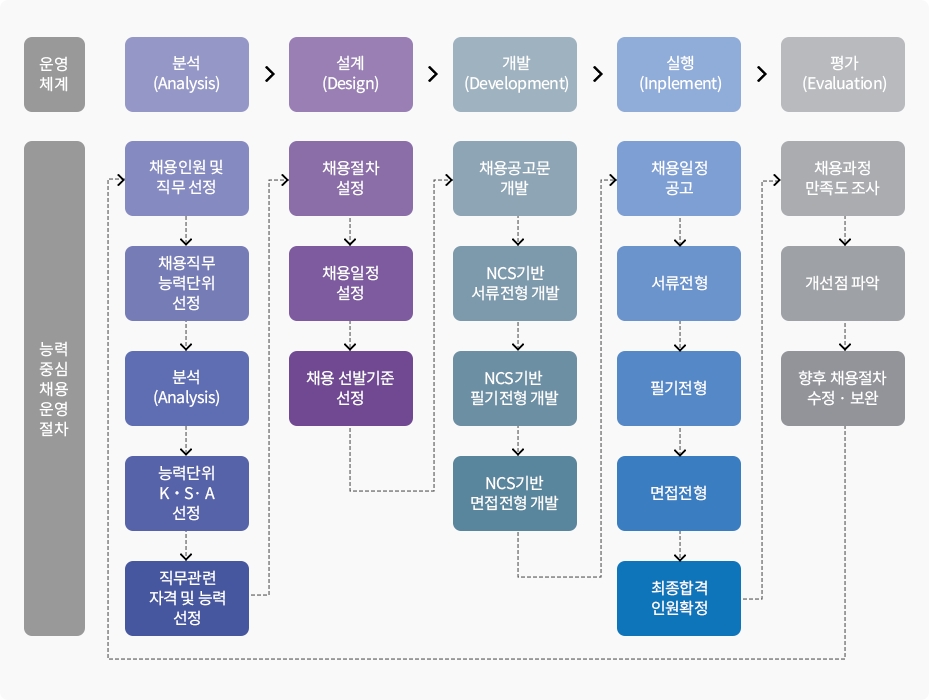 Á÷¹« ´É·Â Áß½ÉÀÇ ¿ì¼ö ÀÎÀç ¼±¹ßÀ» À§ÇØ ±âÁ¸ ä¿ë¿¡¼ º¸¿ÏÇÒ ºÎºÐÀ» Á¡°ËÇϰí, »õ·Ó°Ô µµÀÔÇÒ ÀüÇüº° ä¿ë µµ±¸ µîÀ» Ãß°¡ÇÏ¿© NCS Áöħ¿¡ ¸Â°Ô ä¿ë Àü °úÁ¤À» Àç¼³°èÇÏ´Â °Í ÀÔ´Ï´Ù.